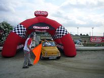 競馬場のトラックは楕円形です、入場した500はトラック中央のゲートからコースに入場、
